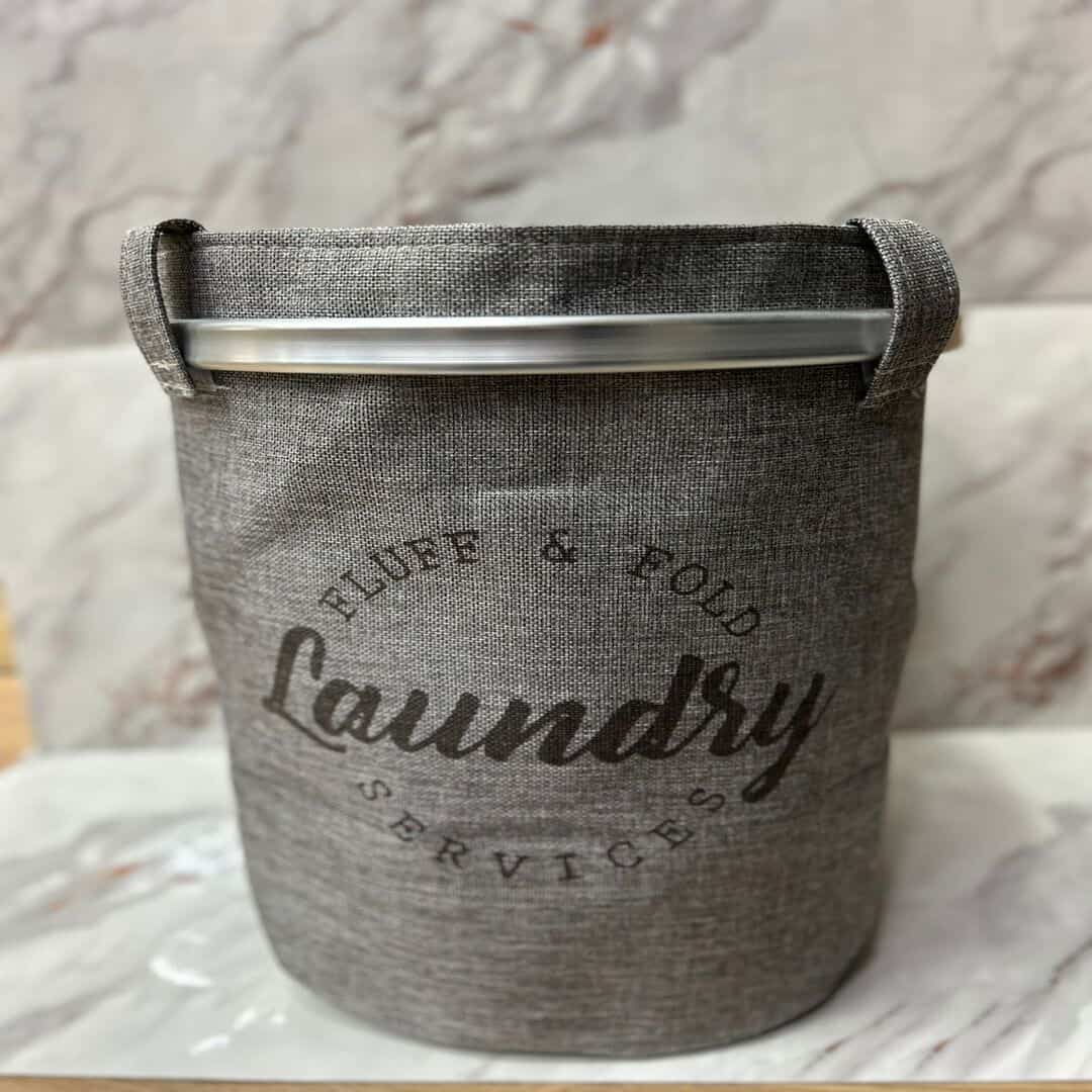 Cesto de lavandería plegable con diseño “Laundry”, tamaño 35×45 cm, ideal para organizar ropa sucia en dormitorios, baño o zona de oficios. Ligero, resistente y fácil de mover.