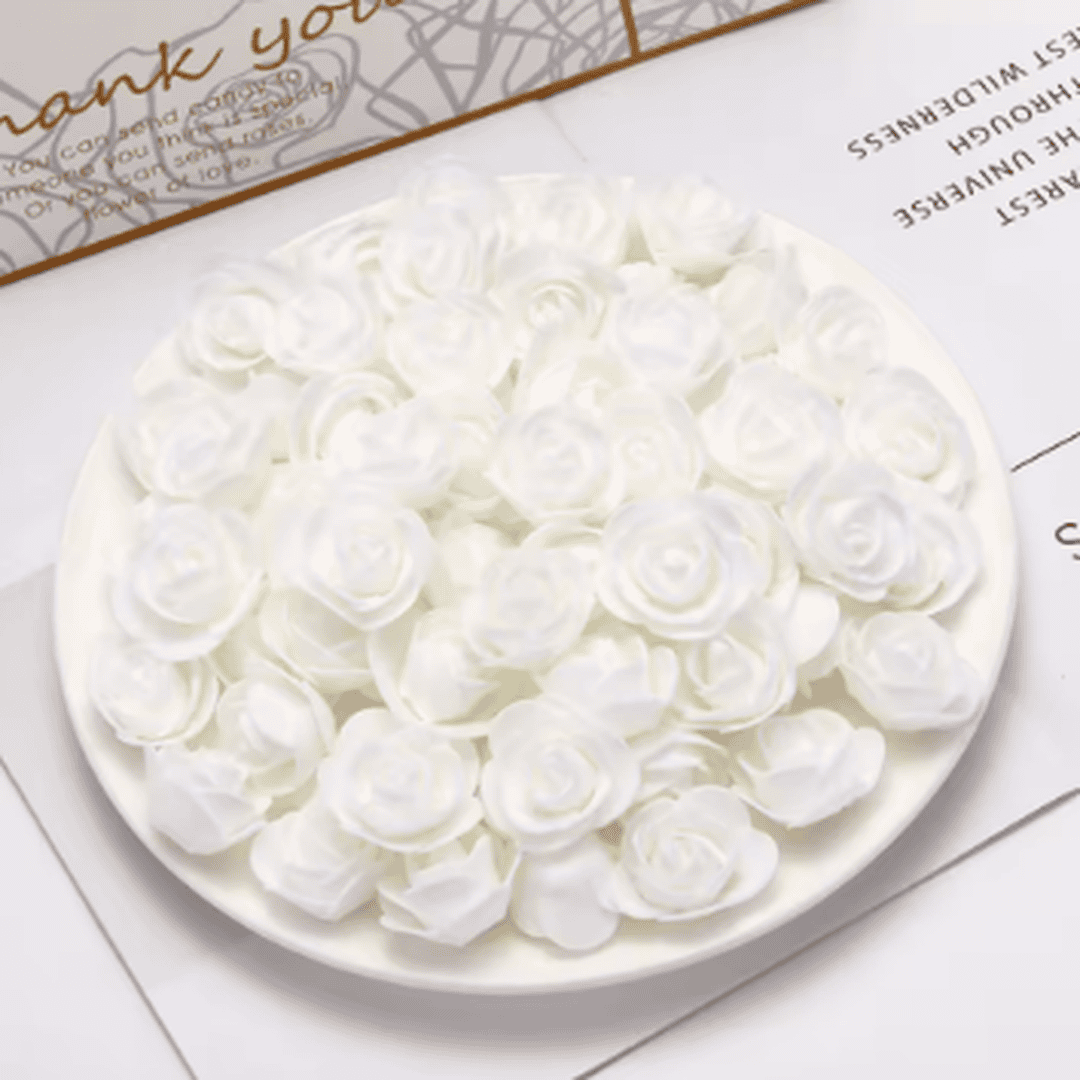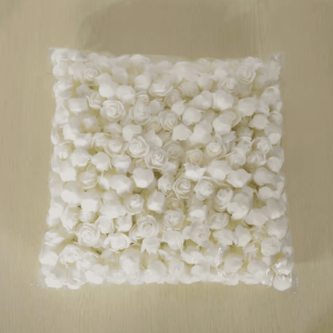 Delicadas mini-rosas en foami EVA blanco nieve: ultraligeras, maleables y resistentes.
