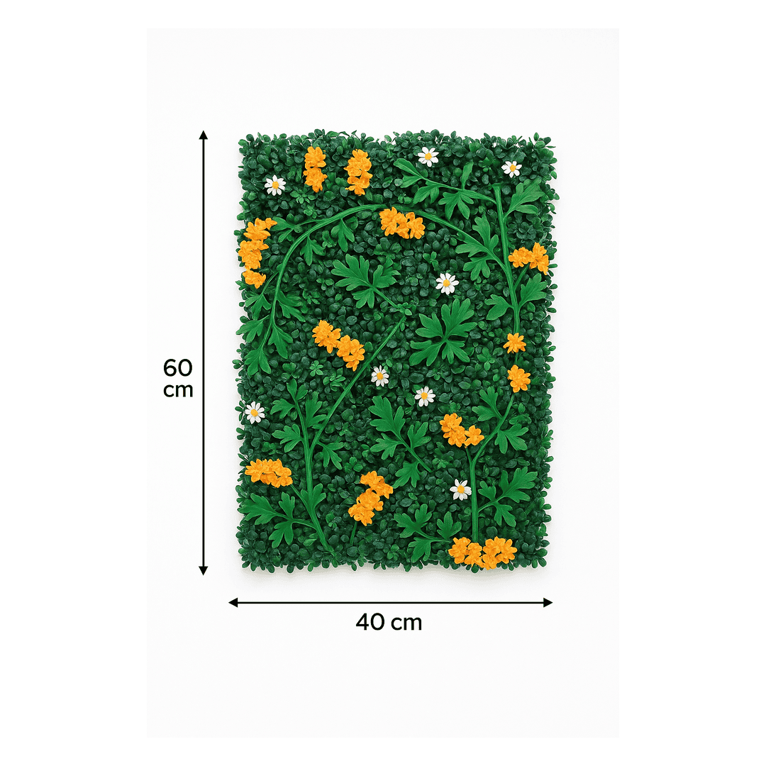 Disfruta de un muro verde con acentos naranjas que no se marchitan ni pierden intensidad.