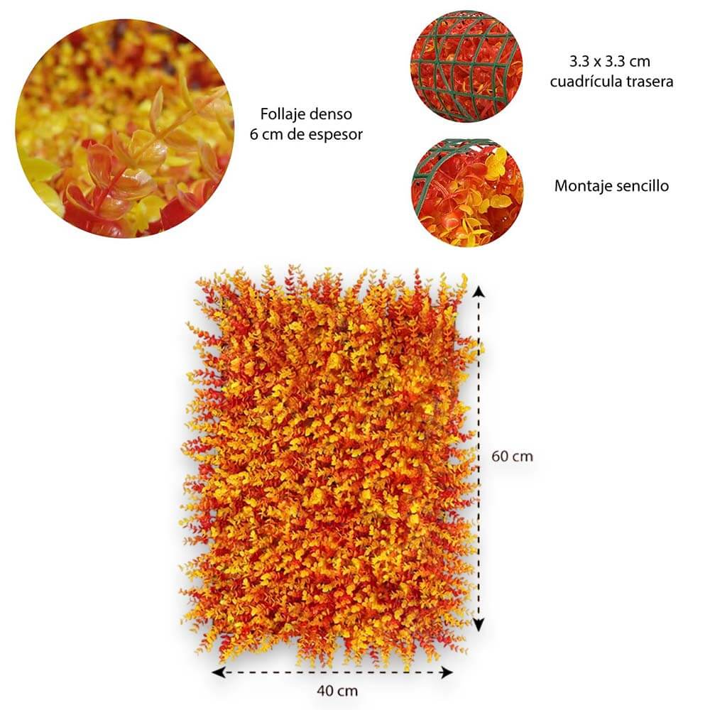 Convierte cualquier pared en un estallido de color con este tapete de hojas rojo-naranja-amarillo. Cero mantenimiento, instalación en minutos y color intenso todo el año.