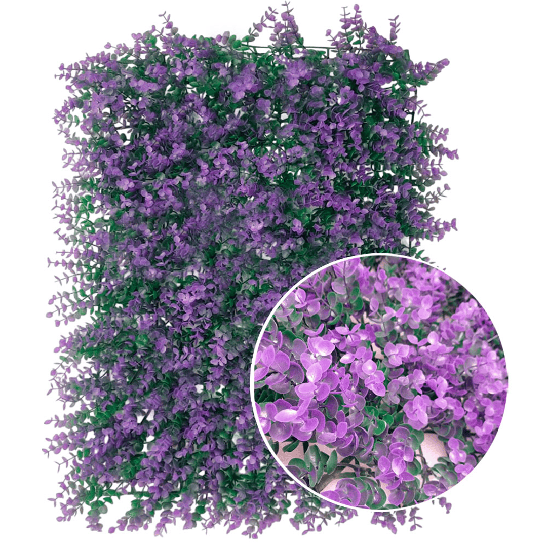 Un acabado tupido requiere 10 paneles de Follaje Artificial Verde con flores Moradas TA-4060-27.