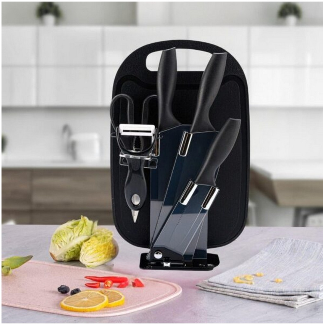 Set de Cuchillos con Tabla y Soporte Acrílico – 7 Piezas
