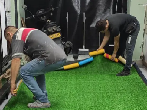 La instalación de grama sintética sobre piso duro (concreto, baldosa o cerámica) es sencilla si se realiza correctamente: