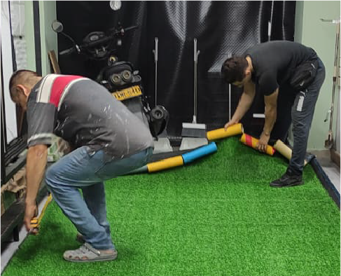 La grama sintética se instala sobre piso duro mediante adhesivos especiales o cintas profesionales. Es importante que la superficie esté limpia, seca y nivelada para garantizar una correcta adherencia y un acabado uniforme.