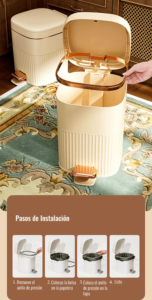 Transforma la tarea cotidiana de desechar residuos en un acto elegante con nuestra Basurera Pop-Up Vintage. Con un diseño que evoca la nostalgia del pasado, esta basurera combina funcionalidad moderna con un toque vintage encantador. Su mecanismo pop-up permite un acceso fácil y sin esfuerzo, mientras que su estética vintage aporta un toque chic a cualquier habitación. La durabilidad se une al estilo en esta basurera que no solo es una solución práctica, sino también una declaración de elegancia funcional.