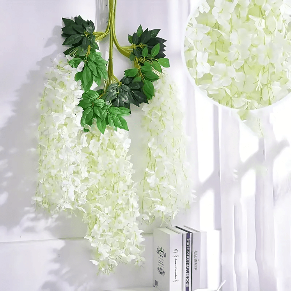 Encanto etéreo con las Glicinias Colgantes Artificiales Blancas F2003-1