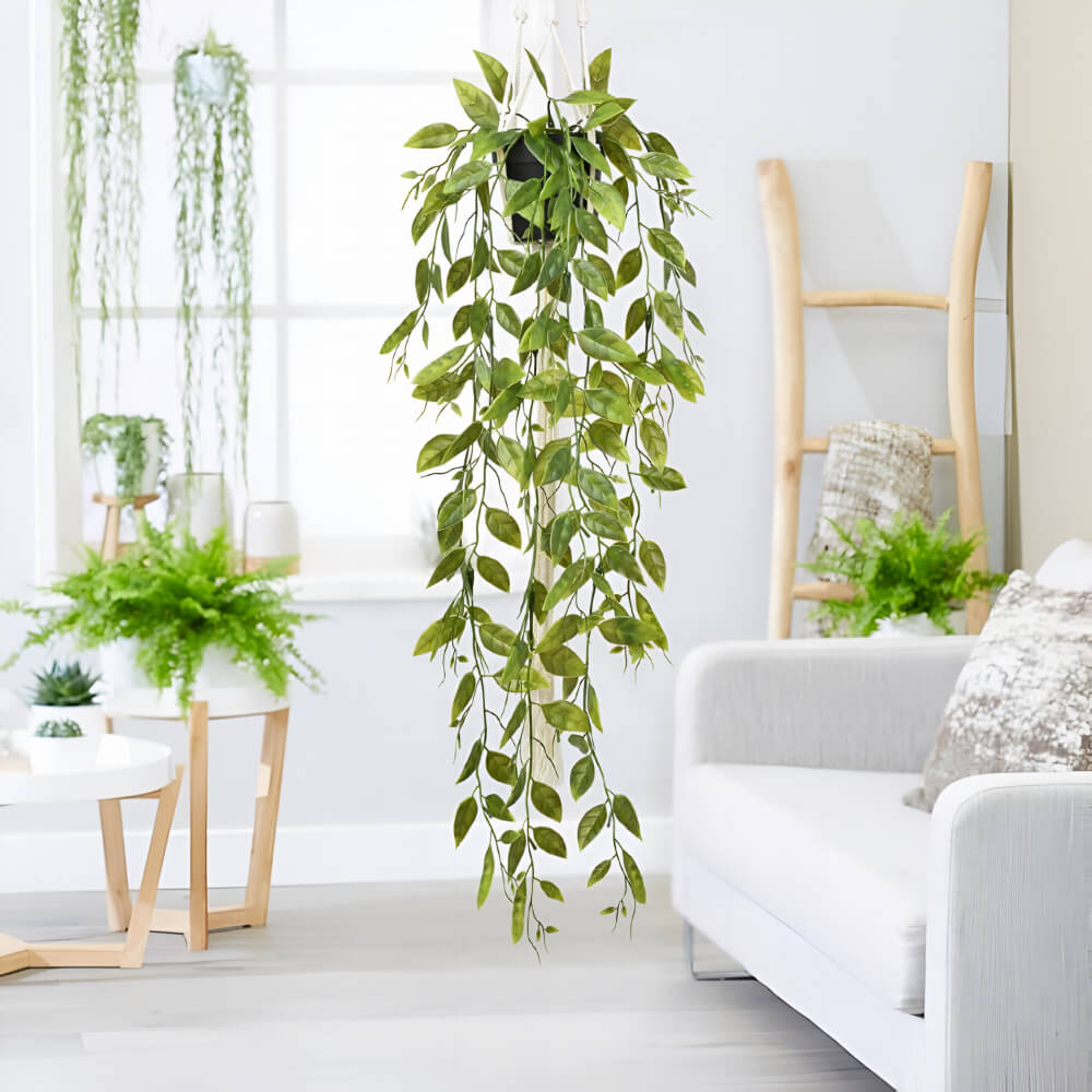El Helecho de Hoja Europea en Maceta Ref. AR-110 es una planta colgante artificial que aporta elegancia natural a cualquier ambiente. Su diseño con hojas largas, delgadas y de apariencia europea lo convierten en un acento decorativo ideal para paredes, estantes o entradas.