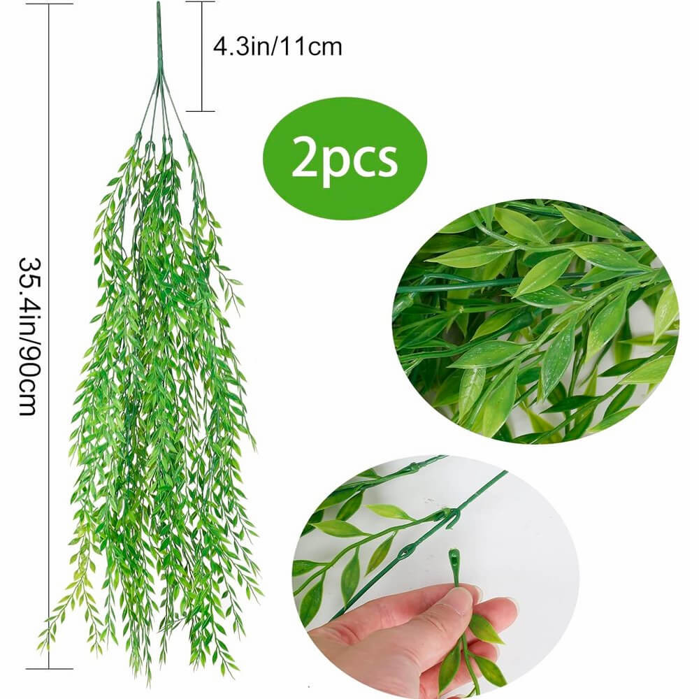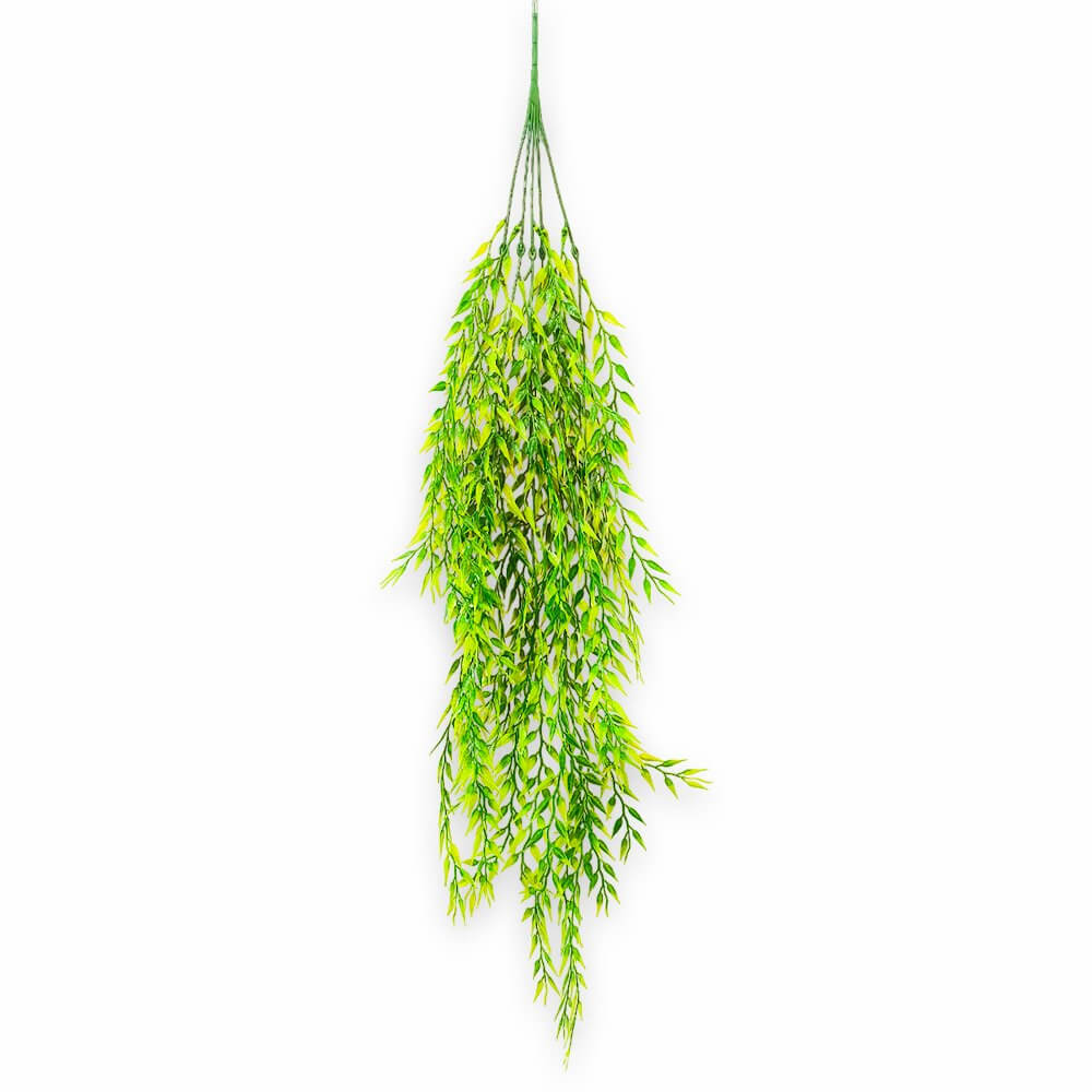 • Diseño colgante tipo cascada con hojas finas y alargadas.