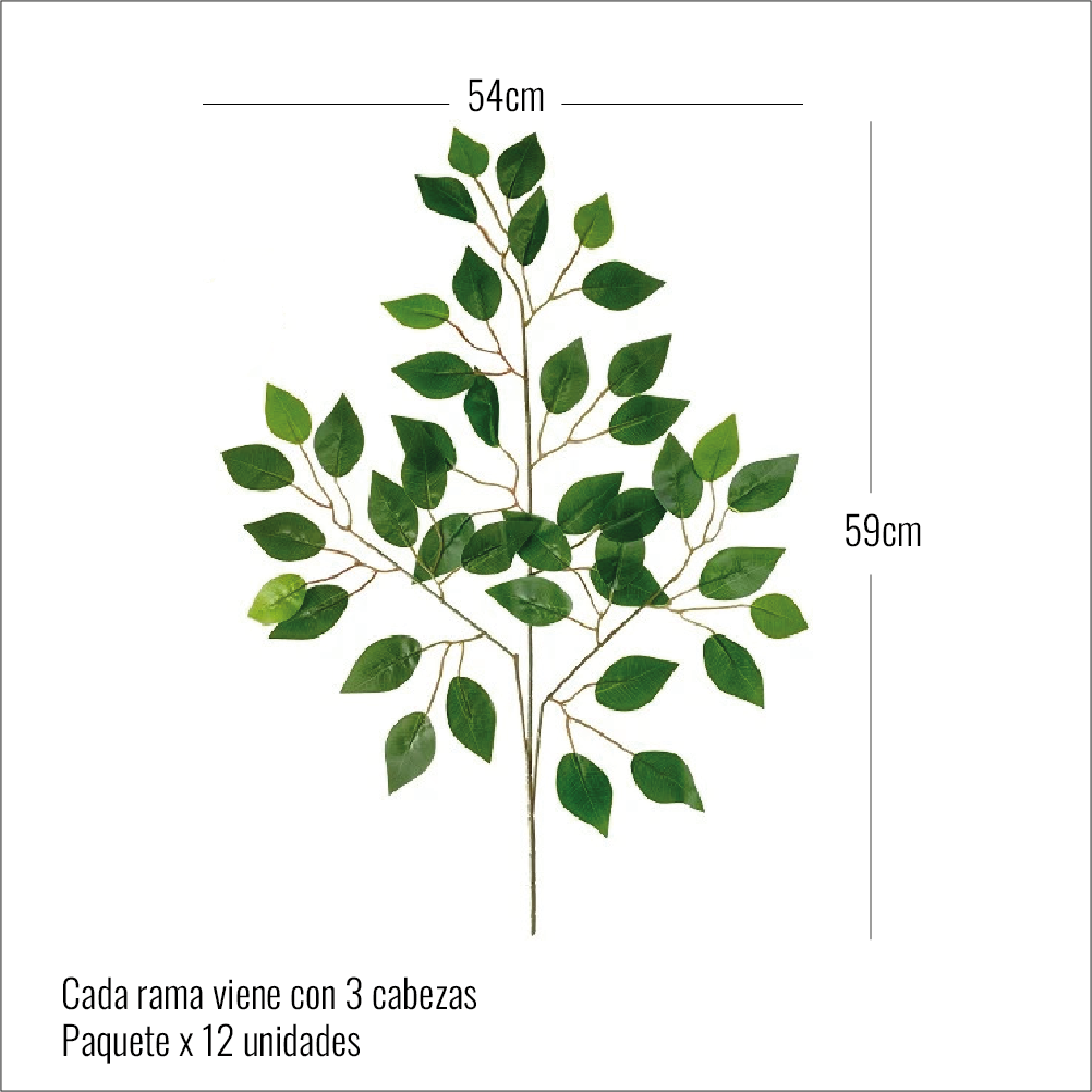 - Incluye 12 ramas con hojas verdes intensas de distintos tonos.