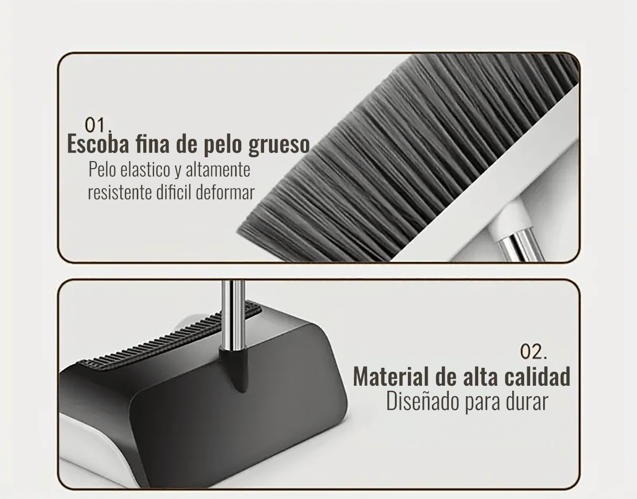 ¡Simplifica tu rutina de limpieza hoy! Haz clic en «Comprar Ahora» y descubre cómo nuestro Juego de Escoba y Recogedor para Sala de Estar puede hacer que la limpieza sea más rápida, eficiente y cómoda. ¡Haz de la limpieza una tarea fácil y sin complicaciones!