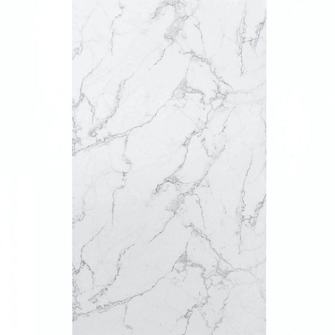 Inspirada en el mármol Carrara, esta lámina presenta vetas grises delicadas sobre fondo blanco, logrando un acabado elegante y minimalista que combina con cualquier tipo de decoración.