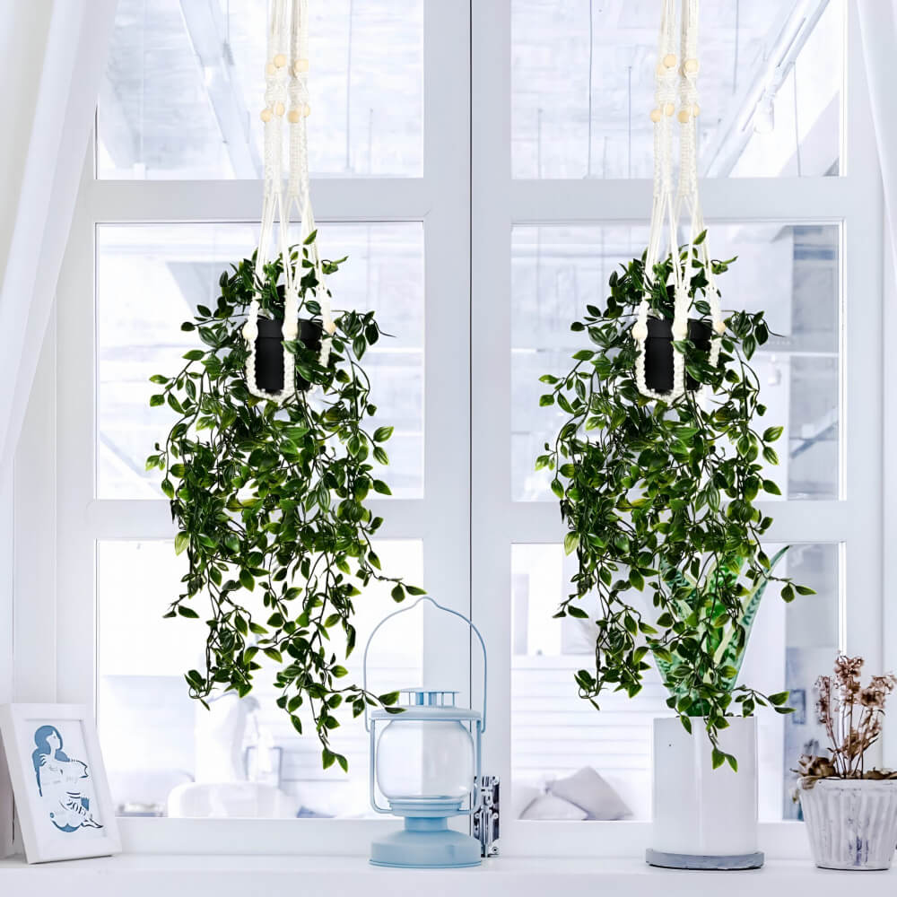 - Incluye maceta decorativa lista para colgar o ubicar sobre repisas.
