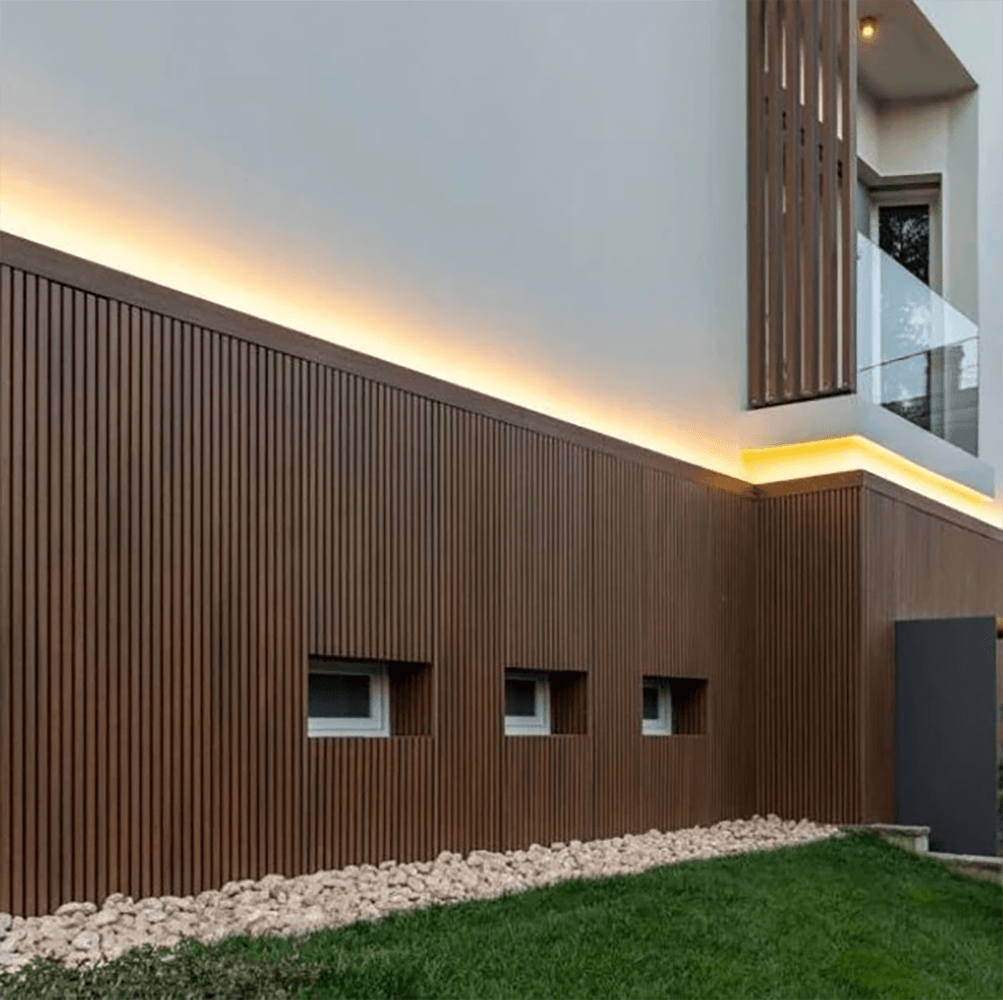 Panel para Pared WPC Exterior Castaño – Elegancia y Resistencia para tus Proyectos Exteriores