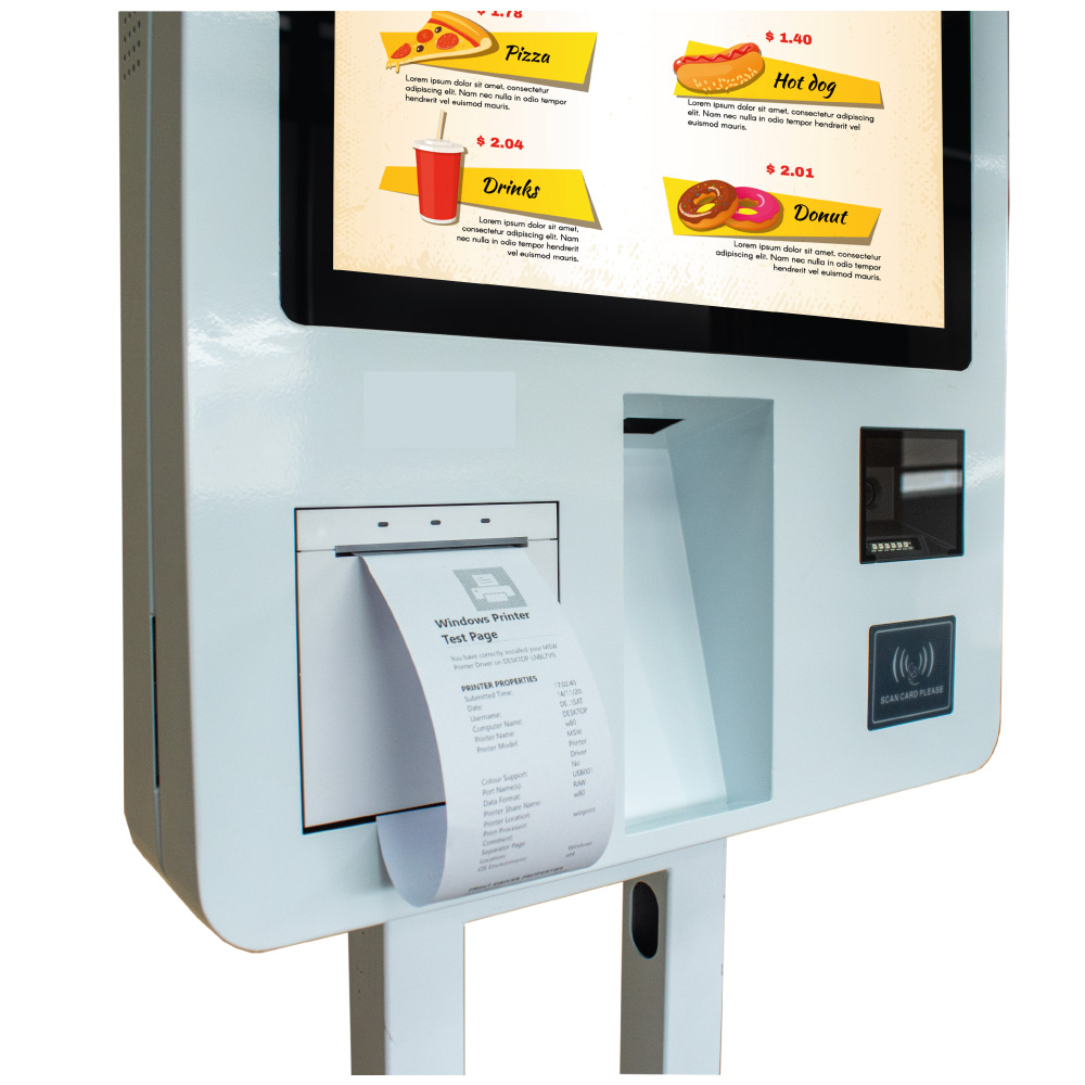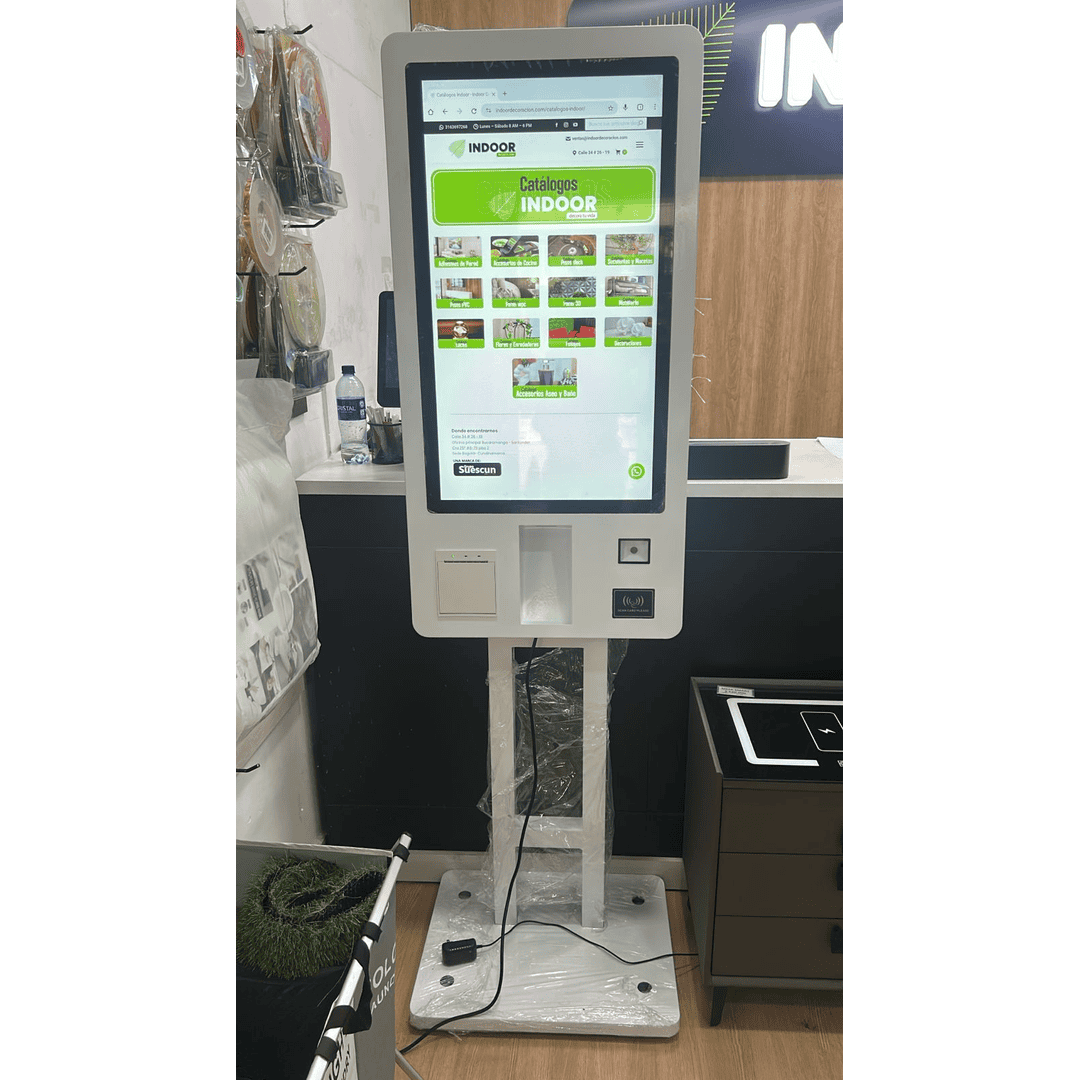 - Tipo: Kiosko de autoservicio táctil.