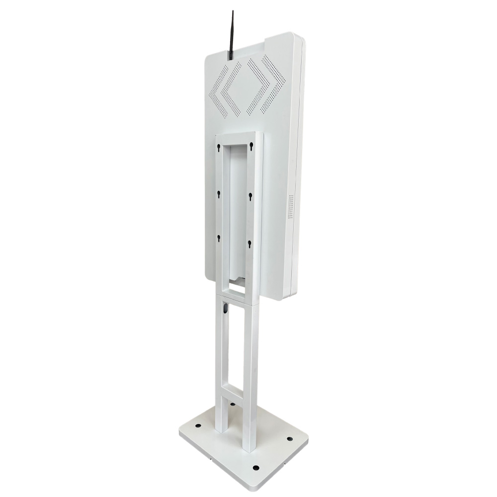 Kiosko interactivo para autoservicio con pantalla táctil, diseñado para montaje en pared o en pedestal. Ideal para toma de pedidos, pagos, turnos, check-in y consulta de catálogos en restaurantes, retail, hoteles, clínicas, universidades y entornos corporativos.
