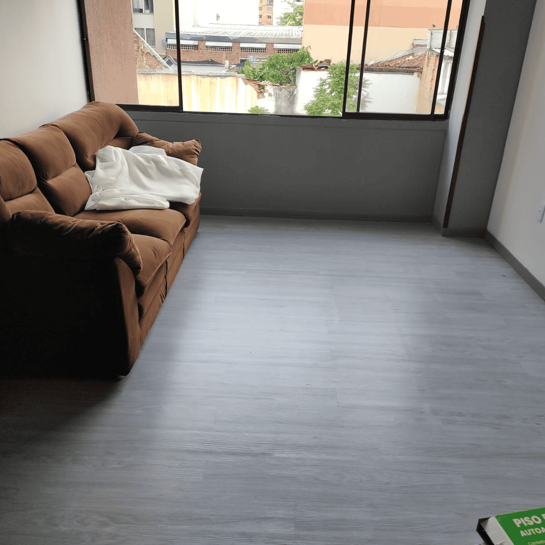 El piso PVC autoadhesivo en tono gris claro transforma cualquier habitación con un estilo moderno, limpio y sobrio. Su color neutro amplía visualmente los espacios y combina perfectamente con muebles oscuros o de líneas contemporáneas.