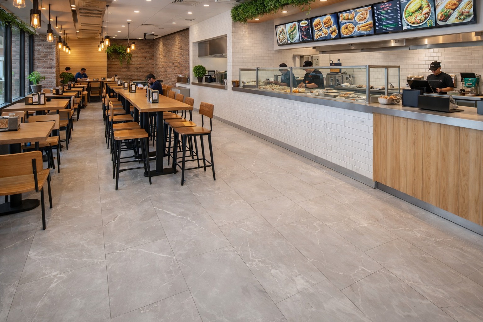 Sus vetas suaves sobre fondo gris claro crean ambientes elegantes, minimalistas y fáciles de combinar con cualquier estilo.