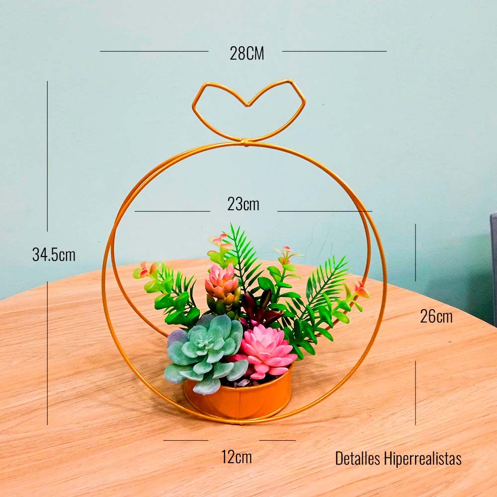 La Suculenta Grande Colgante con Marco es una pieza decorativa de gran impacto visual, ideal para transformar cualquier espacio en un ambiente fresco y con estilo natural. Este diseño incluye una suculenta artificial de gran tamaño, cuyos detalles realistas resaltan por los pequeños brotes de hojas verdes que se extienden desde la base, finalizando en delicadas flores en la punta 🌼. Cada brote aporta un aire de frescura y dinamismo, imitando la apariencia de una planta en crecimiento.