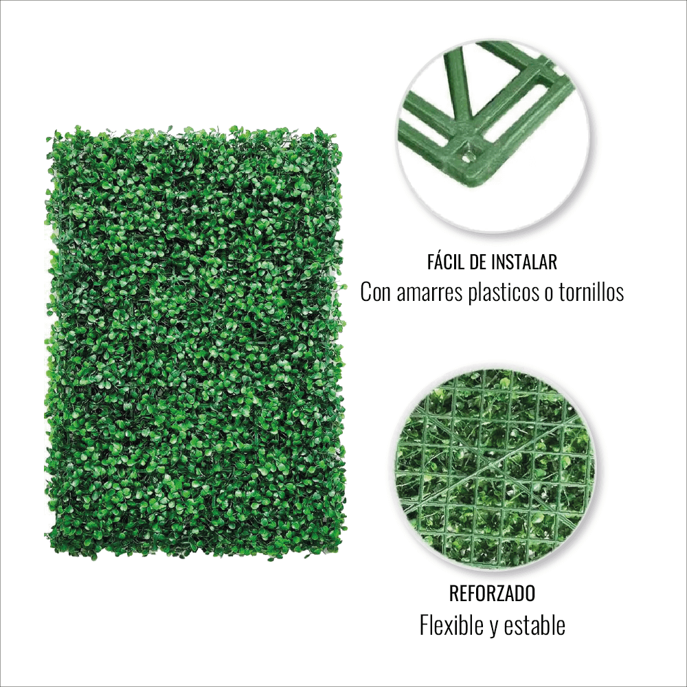 Fabricado con materiales de alta calidad, este follaje de pared es altamente resistente, fácil de limpiar puede instalarse en interiores o matenerse a la intemperie manteniendo su aspecto impecable a lo largo del tiempo.