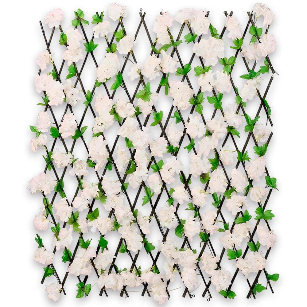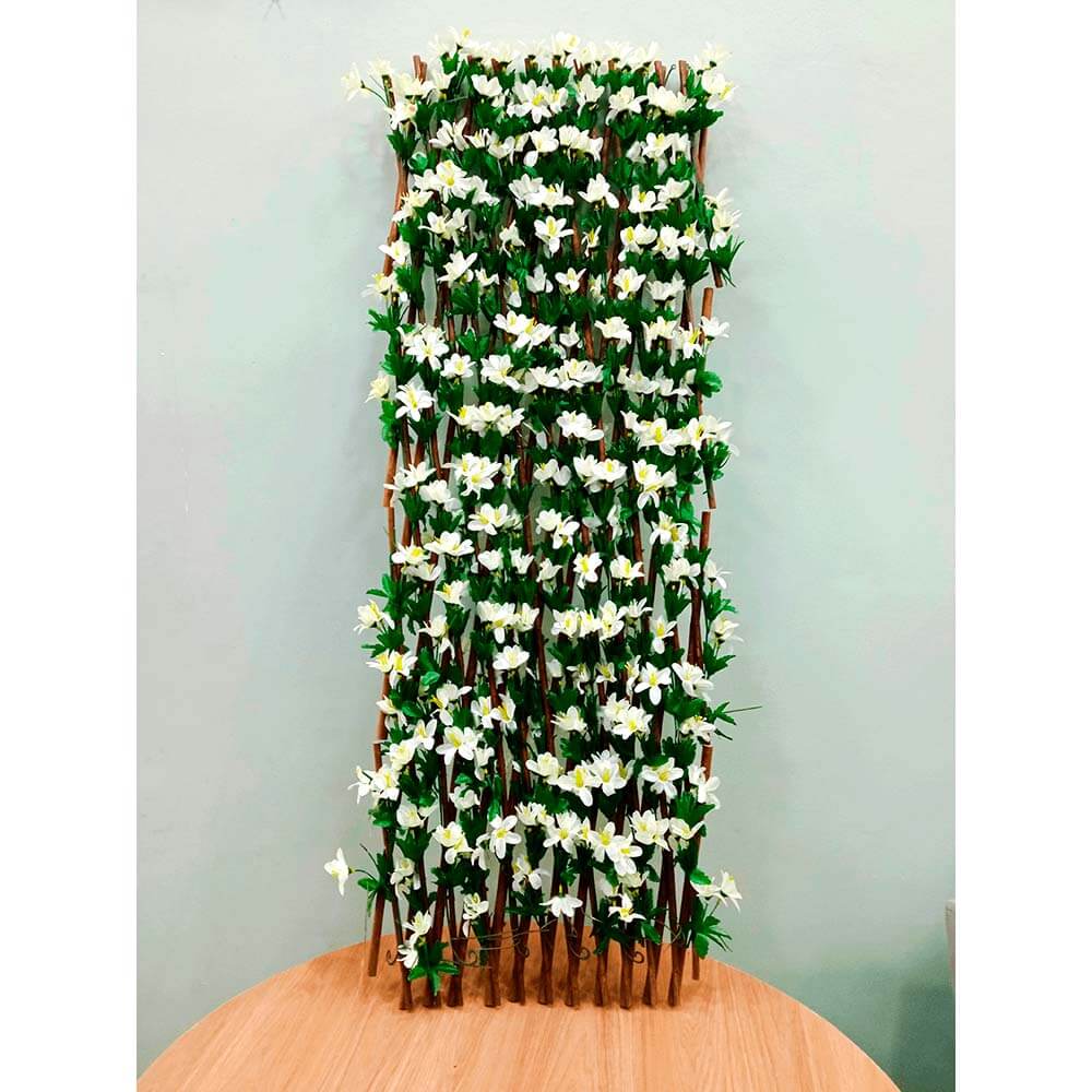 Transforma tus espacios con la sutileza de la valla de flores blancas artificiales y dale un aire de jardín elegante en cualquier rincón.