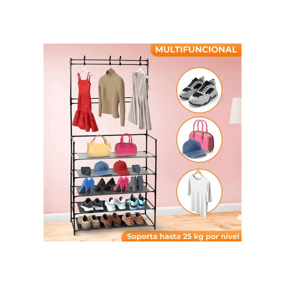 Guarda hasta 12 pares de zapatos, cuelga abrigos y bolsos, y mantén todo a la vista sin ocupar espacio extra.